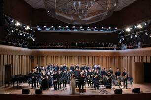 6月12日,“成青春之梦,创青春辉煌”音乐学院交响管乐团专场音乐会盛大上演。管乐团的学生们全情投入,用精湛的技艺和饱满的热情为观众呈现了一场精彩纷呈的演出。音乐会曲目多样,内容丰富,既有经典乐曲的演奏,也融合了蒙古族短调民歌、诗朗诵与管乐的结合以及流行音乐伴奏等多种元素。最后,大合唱与乐团的合作更是将现场气氛推向了高潮。