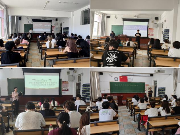 活动分为两个环节。第一环节由学工办辅导员徐向明老师带领学生会及团总支成员等学生骨干集中学习审核评估应知应会知识。第二环节是各班主任组织各班同学们开展了2024年教育教学评估主题学习与宣传主题班会。