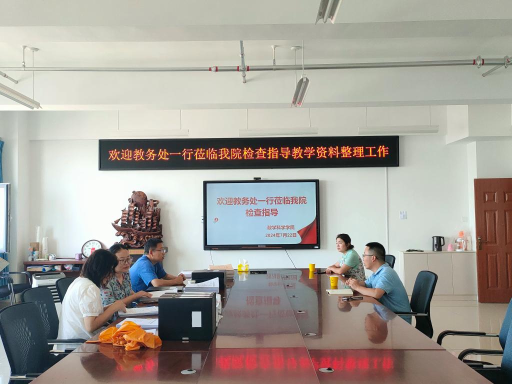 7月22日上午,在期末工作收尾阶段,教务处处长赵国忠一行专程来到我院,对教学资料的整理工作进行了深入、细致的检查与指导。