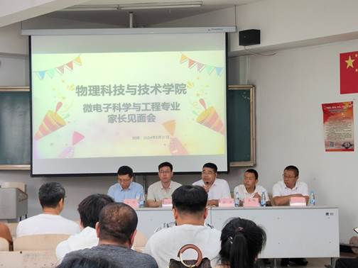 为帮助新生和家长深入了解大学生活,加强家校之间的紧密联系,凝聚育人合力,共同为学生的成长与发展贡献力量。8月31日下午,物理科学与技术学院分专业召开2024级新生家长见面会。学院党总支副书记徐洋、副院长田春凤、副院长武成艳、物理学专业系主任朱红伟、物理学(ISEC)方向负责人王恒、微电子科学与工程专业系主任王凯、应用物理学专业系主任宝金、北京中关村软件园人才基地培训中心李建国、王伟老师、昆山杰普软件科技有限公司左竹林老师、新生班主任、学院辅导员、企业班主任、2024级部分新生及家长参加此次见面会。