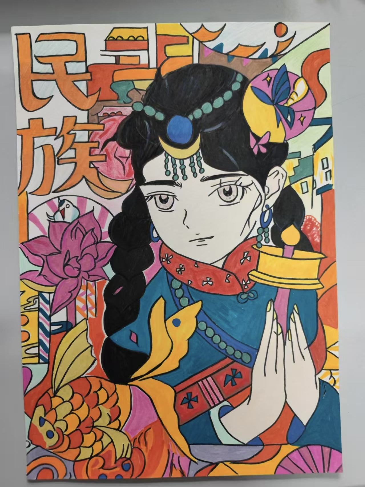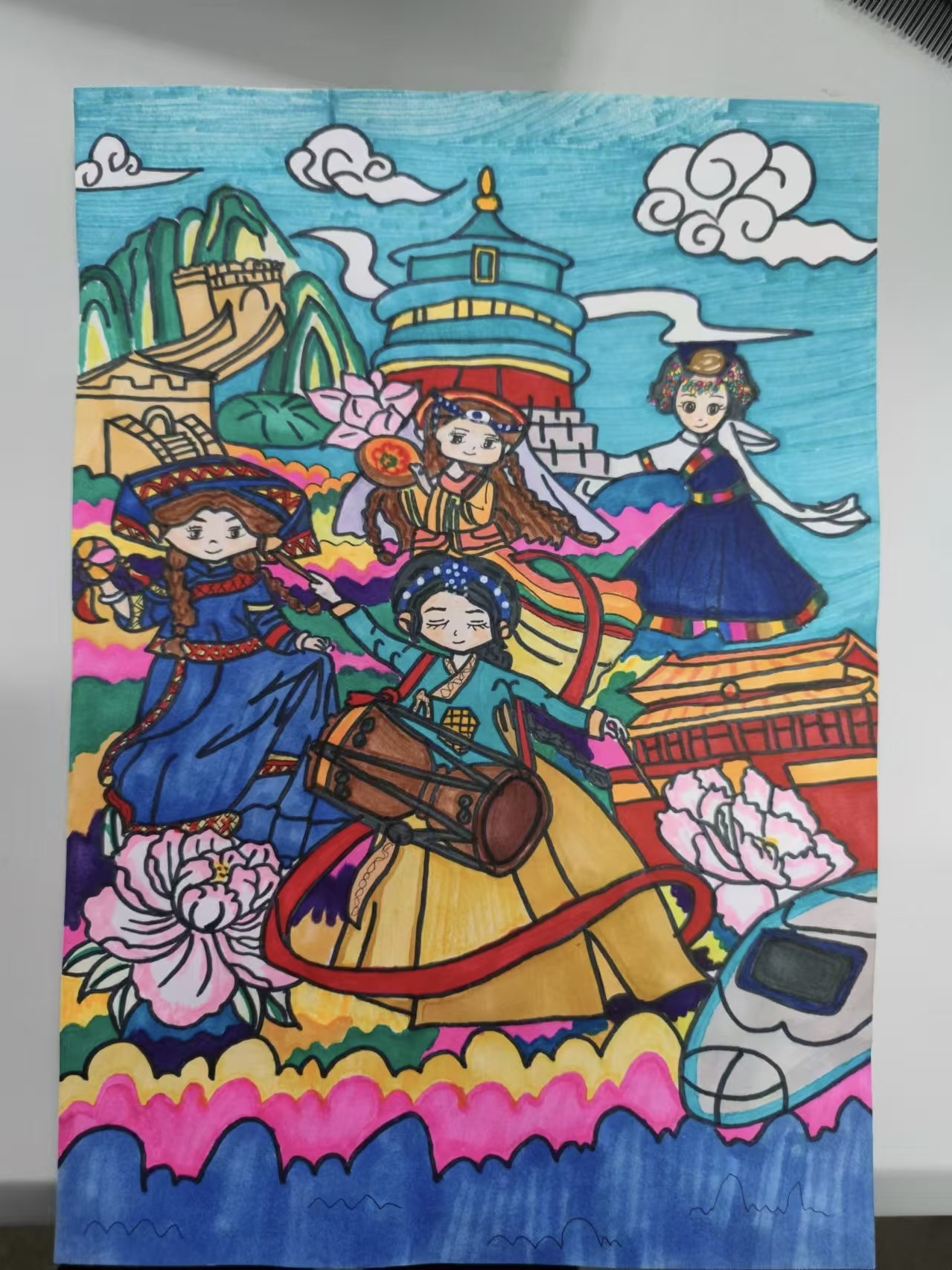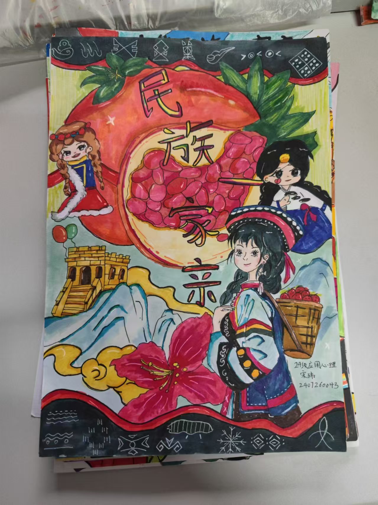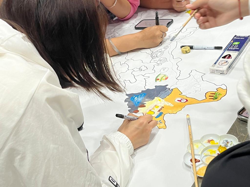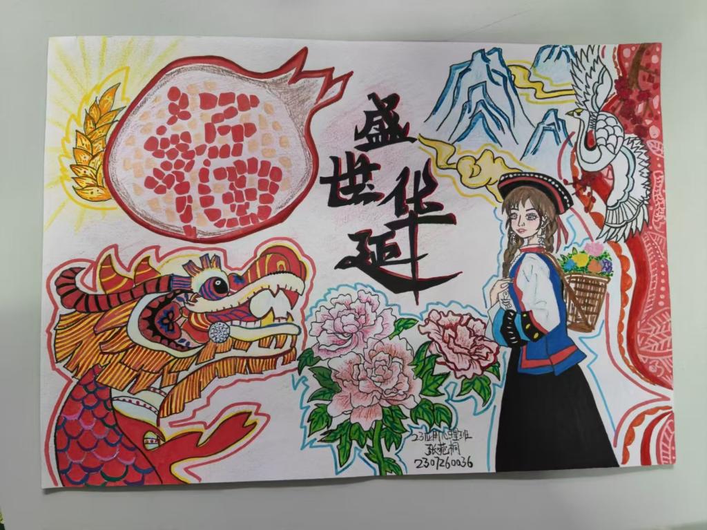 开展长卷绘画活动。2024年9月23日,学院举办了“民族凝聚,同心同圆”长卷绘画活动。此次活动以现场手绘长卷的活动形式展开,10位同学用真挚的感情、灵巧的双手和富有想象的笔墨勾绘出了一幅中国地图画卷。优美细腻的线条和丰富的色彩勾勒,似云锦,点墨绘出心中情,如行云,流水绕素笺,体现了绘画的无限魅力。画卷上身着各民族服装的可爱人物,将长卷绘画作品表现得惟妙惟肖,充分体现了同学们对民族团结的理解。