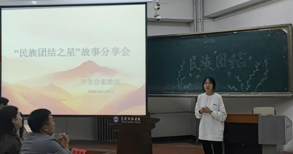 举办“民族团结之星”故事分享活动。为增强各民族大学生之间的交往与交流,弘扬中华优秀传统文化,铸牢中华民族共同体意识,教育科学学院于2024年9月27日成功举办了“民族团结之星”故事分享比赛。活动邀请了郑淑清、阿西德和白双龙三位老师担任评委。本次活动分为主题演讲和才艺展示两个环节,共有17名同学积极参与。在主题演讲中,参赛同学结合课件,分享了为民族团结所做的贡献和与少数民族同学友好交流的有趣经历,真挚的演讲引发了观众的强烈共鸣。在民族歌舞表演环节,各民族同学通过舞蹈、演唱和民族器乐等多种形式展现才艺,赢得了现场观众的热烈掌声。评委老师们对表演进行了精彩点评,并提出了宝贵建议。活动结束后,同学们纷纷表示将继续与少数民族同学相互帮助、共同学习,携手进步。此次活动不仅为同学们提供了展示民族文化的平台,也促进了各民族学生之间的沟通与理解,加深了教育科学学院学子对铸牢中华民族共同体意识的认识与体验。