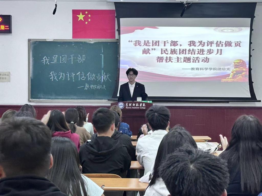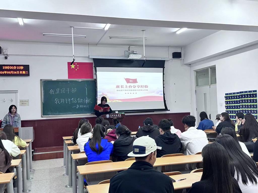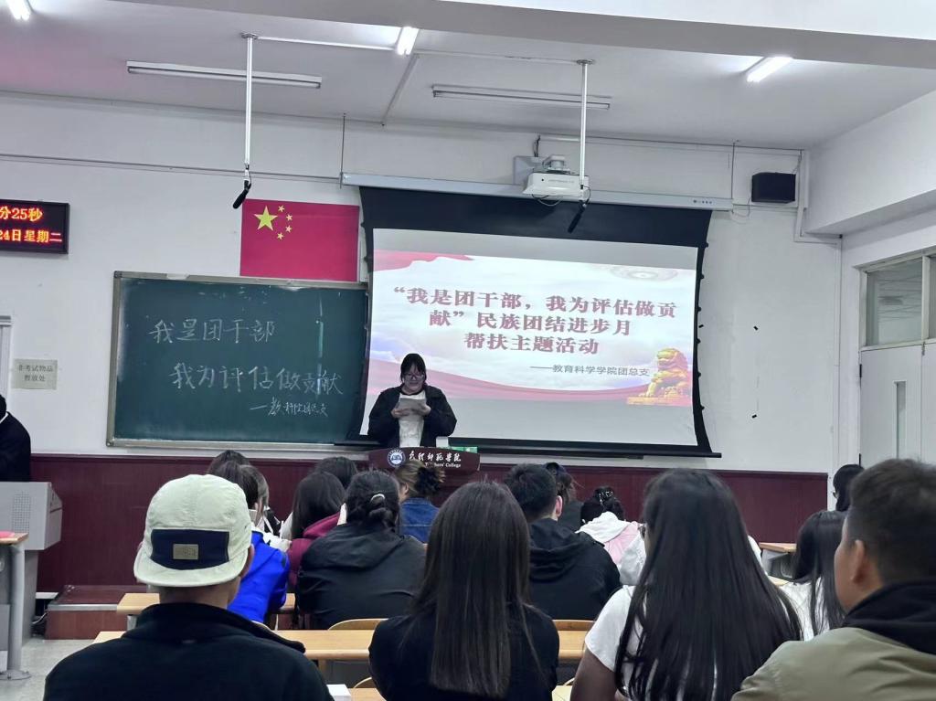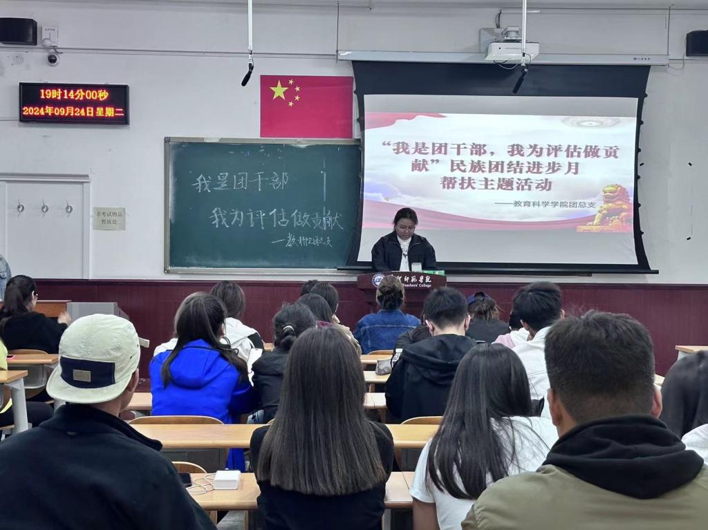 开展班团活动。2024年9月24日开展了“我是团干部,我为评估做贡献”预科生结对帮扶活动,教育科学学院2022-2023级班长、团支书及2024级预科生参加本次活动。各班长和团支书详细讲解了《学生手册》中关于违纪的处分规定、奖学金、助学金评选办法、组织发展程序、审核评估的相关要求,并结合班级管理经验,从学习、生活、安全等方面与学生进行了深入交流,为预科生更好地适应大学生活提供了帮助。从民族交流团结、生活学习、品格养成、梦想未来四个方面指引同学们,向身边的先进典型看齐,积极地向党组织靠拢,把个人的理想追求融入中华民族伟大复兴的中国梦,成为有理想有信念的全面发展人才,进一步铸牢中华民族共同体意识。