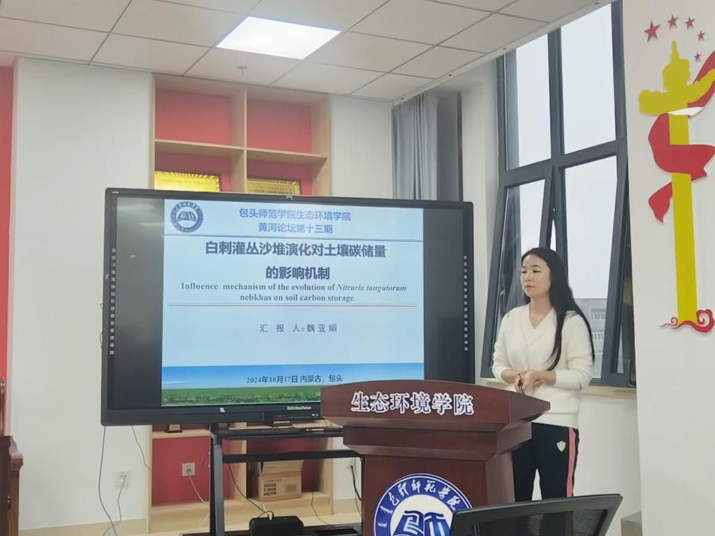 10月17日下午,生态环境学院在笃行楼407会议室举办“黄河论坛”第十三期讲座。本期讲座由魏亚娟老师主讲,学院全体教师参加座谈交流,讲座由韩秀凤副院长主持。