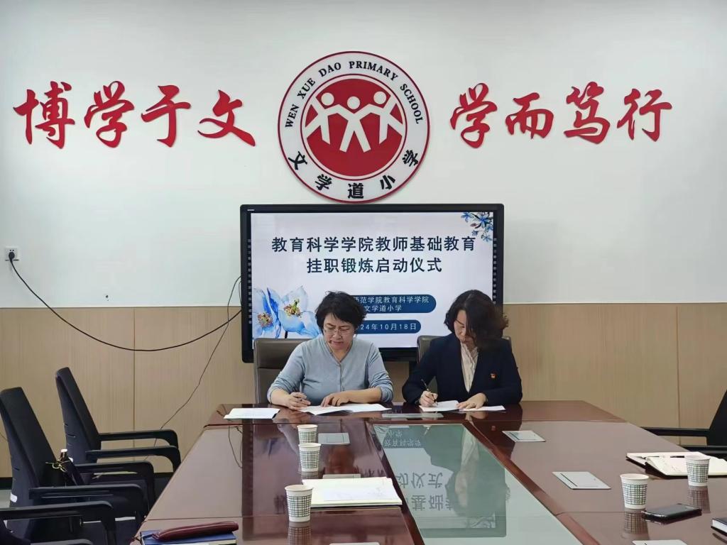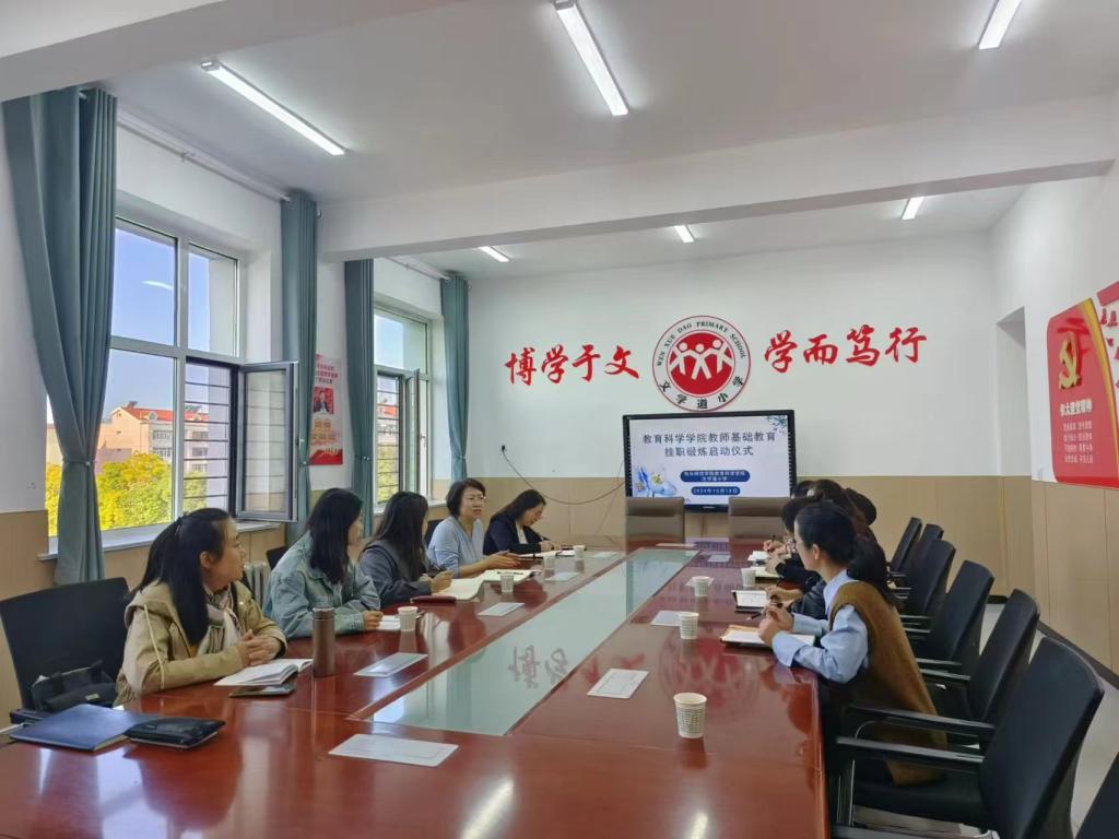 2024年10月18日上午,教育科学学院选派小学教育专业语文课程教学论教师孙丽曼到青山区文学道小学进行挂职锻炼。教育科学学院李芳院长、小学教育专业系主任郭佳、樊兆雅等,文学道小学孙华惠校长、徐树春副校长等参加了挂职锻炼启动仪式。