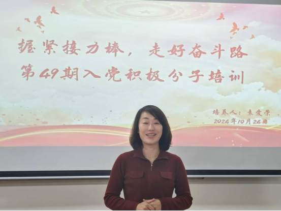 袁老师对培训内容进行了深入讲解。在积极分子素养培养方面,袁老师强调了多个要点。首先是承担责任,袁老师指出积极分子要主动承担责任,培养责任感,这对他们未来在各个方面发挥带头作用很关键,能让他们在面对问题时积极解决,为他人做表率。其次是注重人际交往,袁老师详细讲述了积极分子如何正确地进行人际交往,为他们将来为人处世给予了指导,有助于他们更好地与他人相处合作。再者是深入群众,袁老师强调积极分子要深入到群众中去,了解群众需求,这样才能更好地服务人民,践行党的宗旨。另外,袁老师还提到积极分子要有明辨性思维和主见,在复杂的环境中能分辨是非,在做决策时坚定自己的想法,为人生发展找准方向。在袁老师的谆谆教导中,积极分子不仅修正了自己的思想,而且对于将来的人生发展有了更加全面的规划。