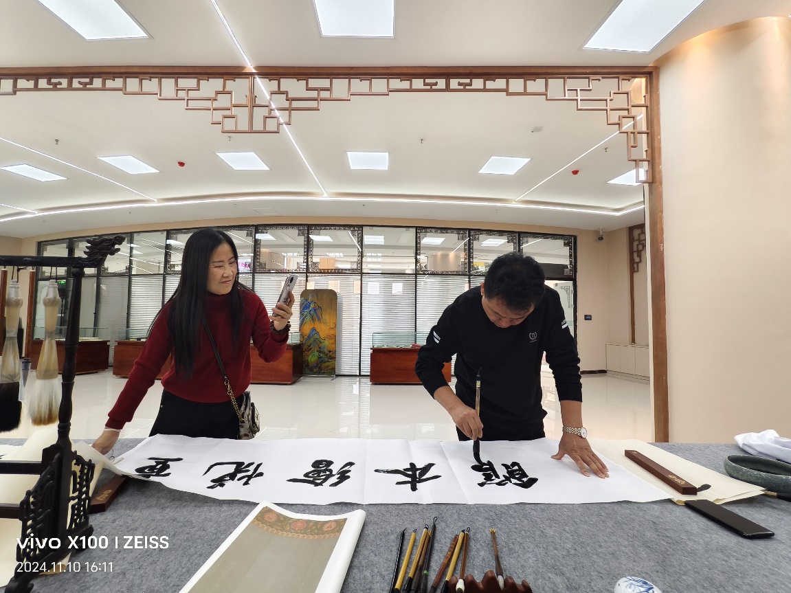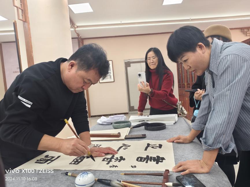 雷平老师书法浑厚大气,气韵贯通,笔墨酣畅,现场洋溢着笔墨之香、文雅之风,大家深切感受到雷老师的文化情怀和独特高深的书法境界,领略到中国传统文化的独特魅力,感受到书法艺术所蕴含的精神内涵和人生哲理。