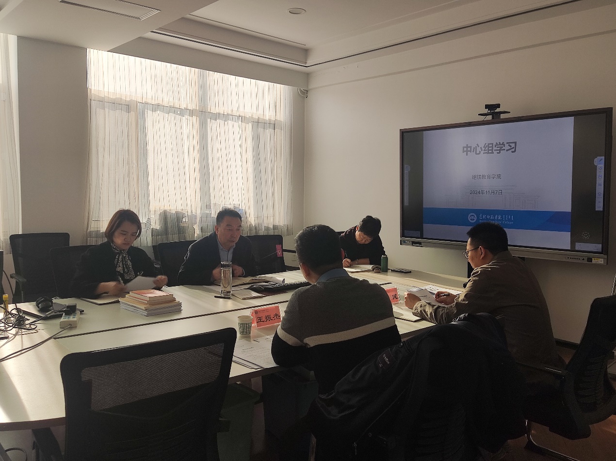 根据我校《党委组织部关于2024年下半年组织生活安排的指导意见》《包头师范学院党委2024年巡听旁听院(处)级理论学习中心组学习工作方案》的要求,继续教育学院积极开展学习研讨,制定了继续教育学院学习贯彻二十届三中全会精神实施方案,在广泛征求全体教职工的意见的基础上,认真组织中心组学习活动。
