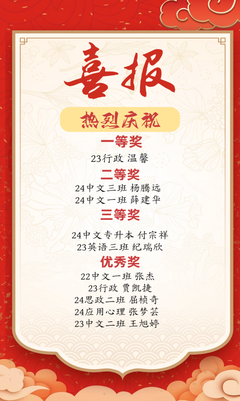 本次大赛不仅帮助参赛选手查漏补缺,提升考公的经验技巧,同时也为同学们提供了一个实战演练的机会和平台。未来,学院将继续做好研究生、公务员、教师等应聘考试的指导培训工作,为每一位怀揣梦想的学子提供高质量、针对性的指导培训。(文学院)