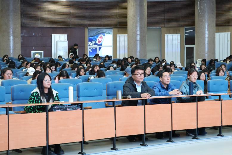 文学院共组织400余名学生观赛。比赛现场按照公考面试场景布置,选手们依次上台作答,面试流程和环节配合紧密,为同学们呈现了高度还原的面试现场。