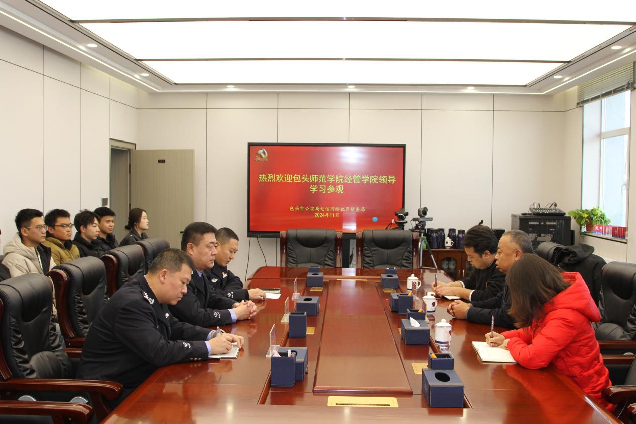 11月26日,经济与管理学院党总支书记张勇一行前往包头市公安局电信网络犯罪侦查局参观学习。此次活动旨在进一步加强学院与实习单位的合作共建联系,并同时慰问在该局实习的本院学生。