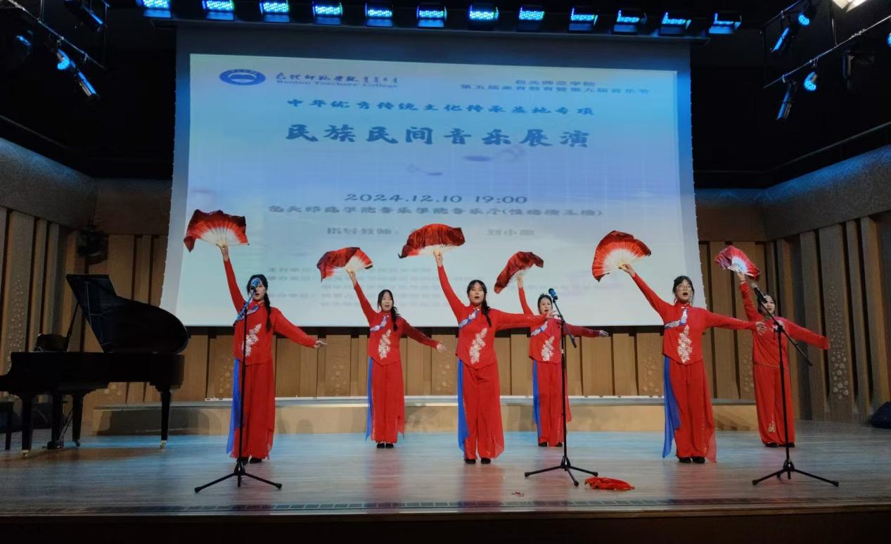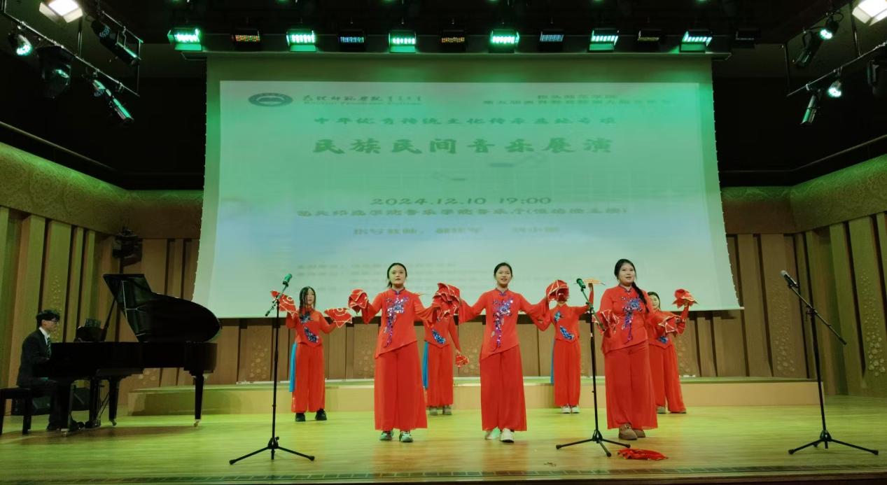 此次音乐会的创新之处在于把歌舞表演与民歌演唱相结合,节目编排精美、气氛热烈、精彩纷呈。在近两个小时的展演活动中,同学们边歌边舞、热情洋溢地奉上了一场视听盛宴,不仅展现了学生们丰富的想象力和创新力,也体现了对民族音乐的热爱,传达出歌曲中蕴含的情感内核,演绎了民族民间音乐丰富绚丽的画卷,展现了中华优秀传统音乐文化的魅力。