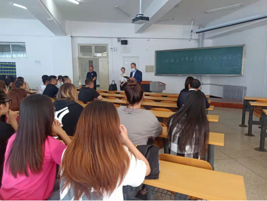 赵洪宝副书记鼓励同学们勇敢尝试基层工作,进入工作岗位后,要努力克服困难,遇特殊情况,要及时与实习指导教师和学院沟通联系。强调了疫情期间的学校规章制度,“非必要不出校门,出校则一定要注意安全。”