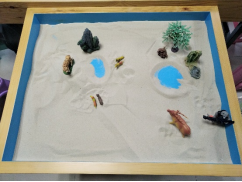本次活动邀请了来自马克思主义学院文科班和理科班各3名,共6名同学参与活动。活动在心理咨询中心张鹏老师的带领下进行。参与活动的同学在制作箱庭作品环节均踊跃参与,认真完成。在完成作品后的分享讨论环节各抒己见,畅所欲言。各位同学凭借默契共同完成了属于他们大学生涯的第一个箱庭作品。