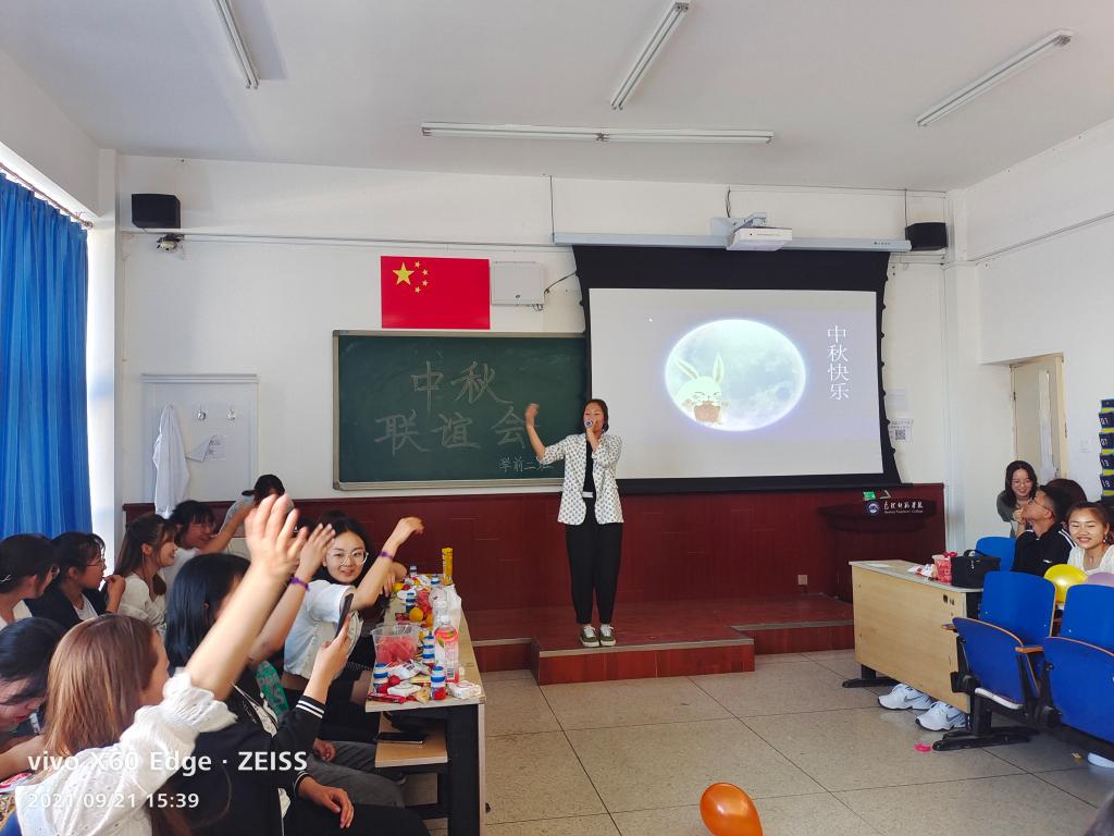 在国庆、中秋双节到来之际,为丰富同学们的校园文化生活,帮助2021级新生迅速融入大学生活,让远离家乡的新生们在学校也能感受到家的温暖,增强集体凝聚力,2021年9月21日下午教育科学学院6个新生班级300余名新生在班主任和助理班主任的带领下在博学楼教室分别举办“新生中秋联欢”活动。党总支书记张岫峰、院长李芳、党总支副书记李燕、学工办主任、团总支书记方丽慧、辅导员王璐然以及学院学生会主席团成员深入各班级进行了走访慰问。