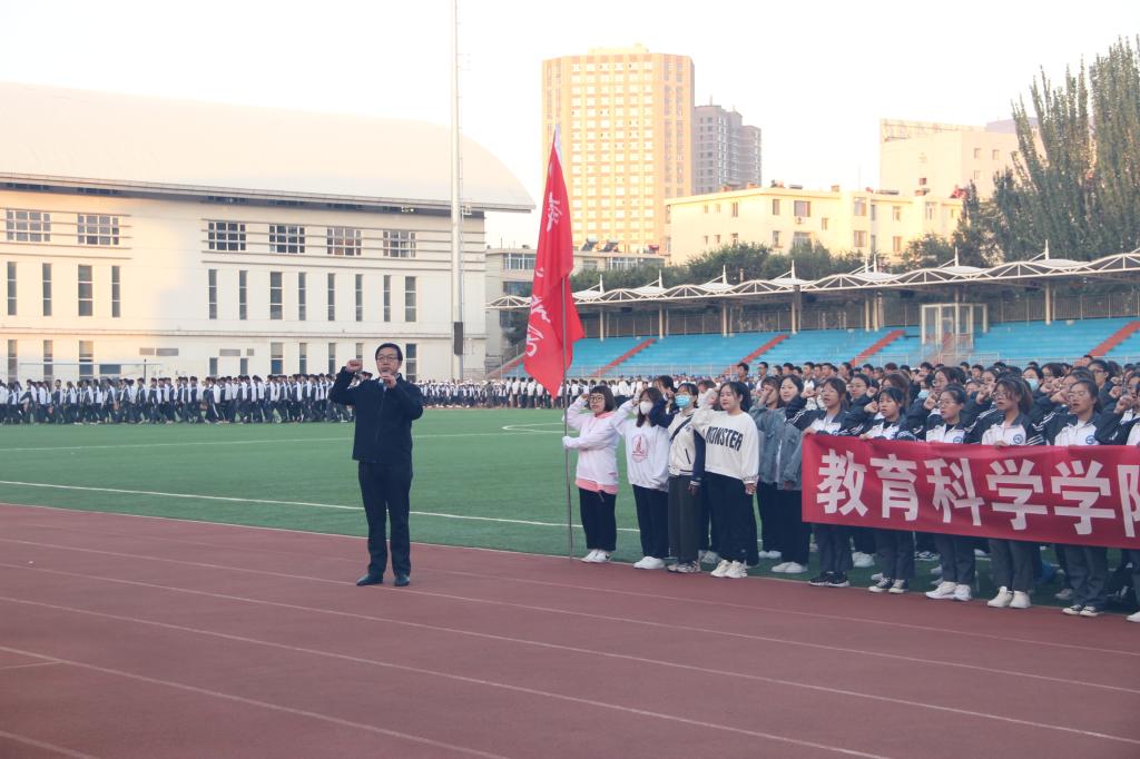 9月27日上午6点50分,教育科学学院在学校操场举行2021级新生入学教育仪式,党总支书记张岫峰、院长李芳、副书记李燕、副院长刘俊英、全体辅导员、2021级班主任和320名新生参加了活动,活动由副书记李燕主持。