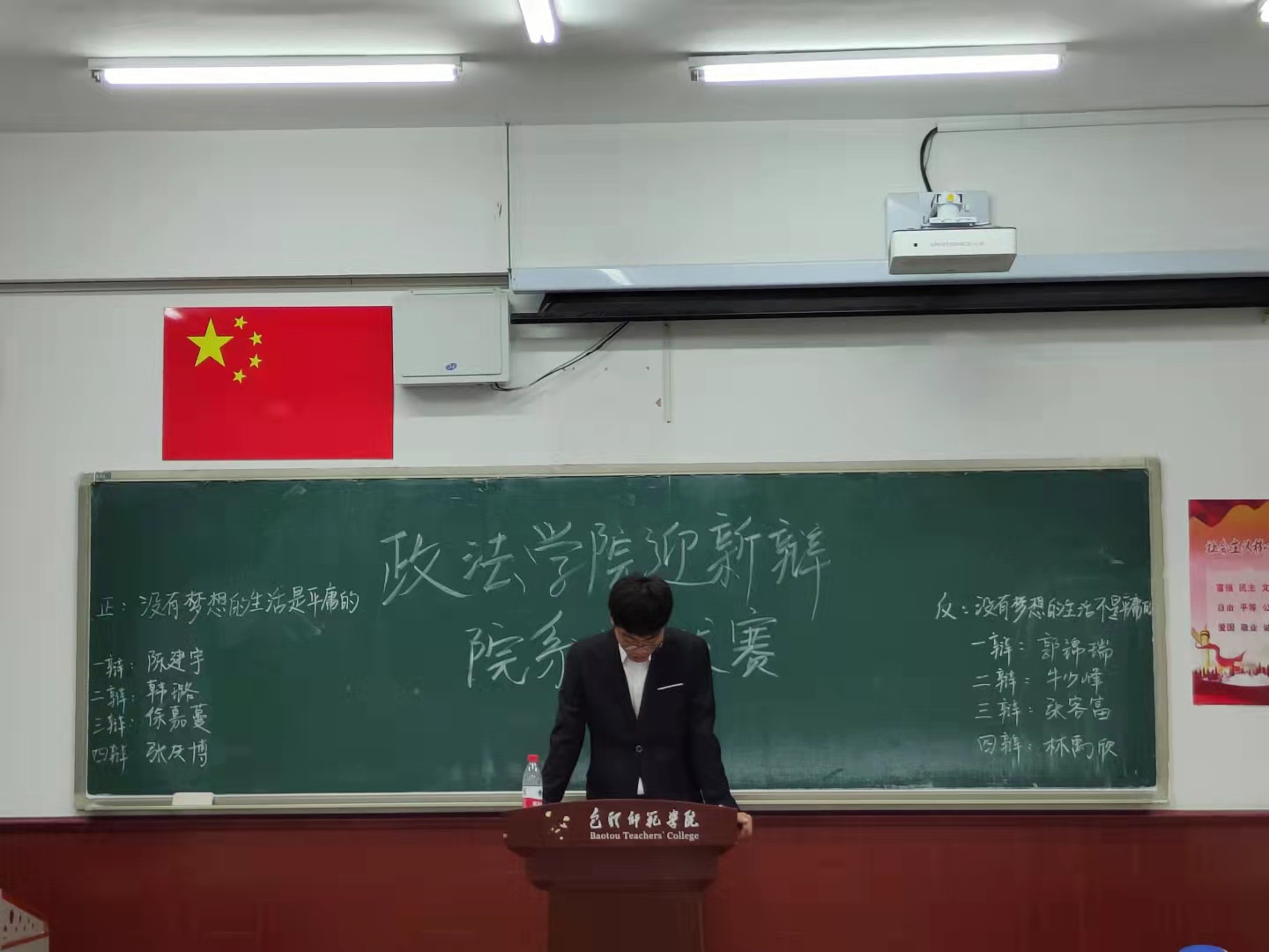 唇枪舌战,辩赛场硝烟;口若悬河,理是非曲直。为提升学生思辨能力,加深对事物的理解,丰富大学生的课外生活,9月23日晚上政法学院在博东504、博东505举办了院级迎新辩论赛。政治与法律学院各专业新生踊跃报名,热情参与。