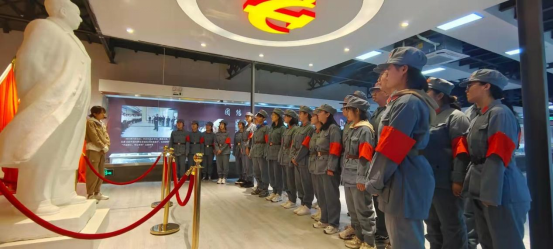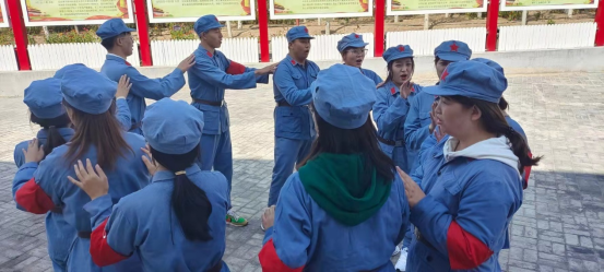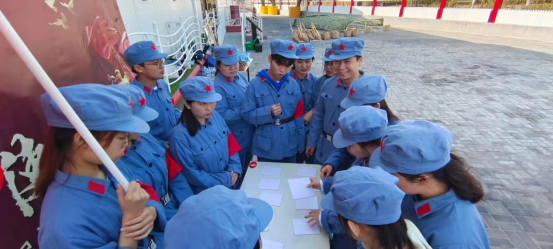 在这里我们以真实体验的方式重温抗日时期的支援前线过程,进行了多项活动,首先,支部所有成员被分为两个连队,闪电一连和闪电二连,换上红军服,进行连队文化展示。然后,进行“初心密码解密”活动,共有“守、初、心、担、使、命、找、差、距、抓、落、实”和“建党100年logo”13张卡片,两个连队通过团队合作,商讨解密策略,培养了团队的凝聚力。