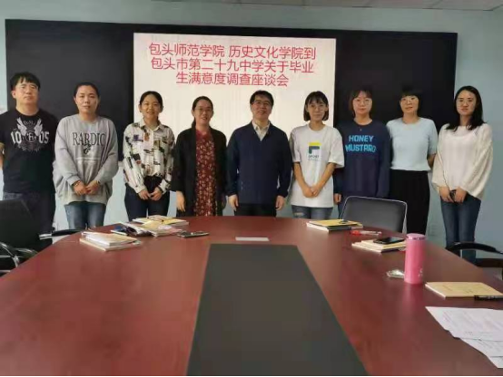历史文化学院历史学专业为服务于专业认证、立足于学院长远发展,关注社会对中学历史教师需求,开展一系列对毕业生和用人单位的调研活动。学院领导通过教学会议,进行专门讨论和认真规划,制定了一系列社会调研安排。调研重点围绕包头市周边区旗县进行。从6月开始,派遣吕喜林老师北向到固阳县第二中学和第三中学,西向到五原县第三中学和第五中学,南向达拉特第十二中学,东向土默特右旗第一民族中学和萨拉齐第一中学。鉴于东部地区有大量就业毕业生,派遣张二平老师到太卜寺旗一中和四中、锡林郭勒盟蒙古族中学、锡林浩特油田学校和锡林浩特宝利根苏木中学。