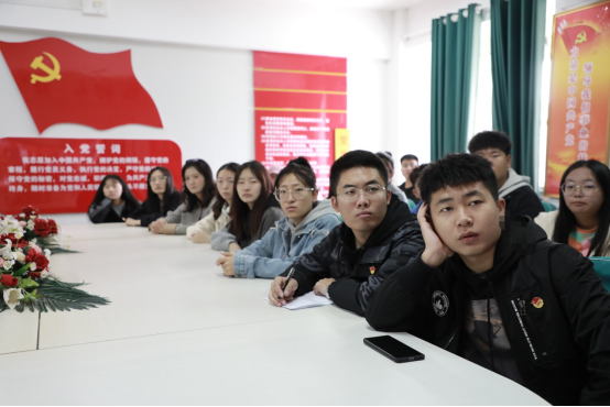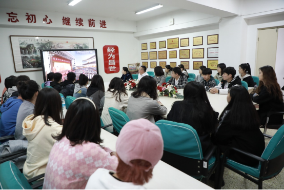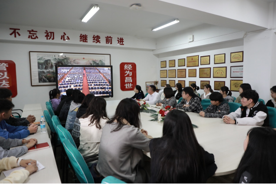 经济与管理学院党总支书记李灵芝、副书记赵洪宝、辅导员陈丽芳老师、郑钰老师和学生党员、学生代表在博学楼802共同观看“纪念辛亥革命110周年大会”。(经济与管理学院)