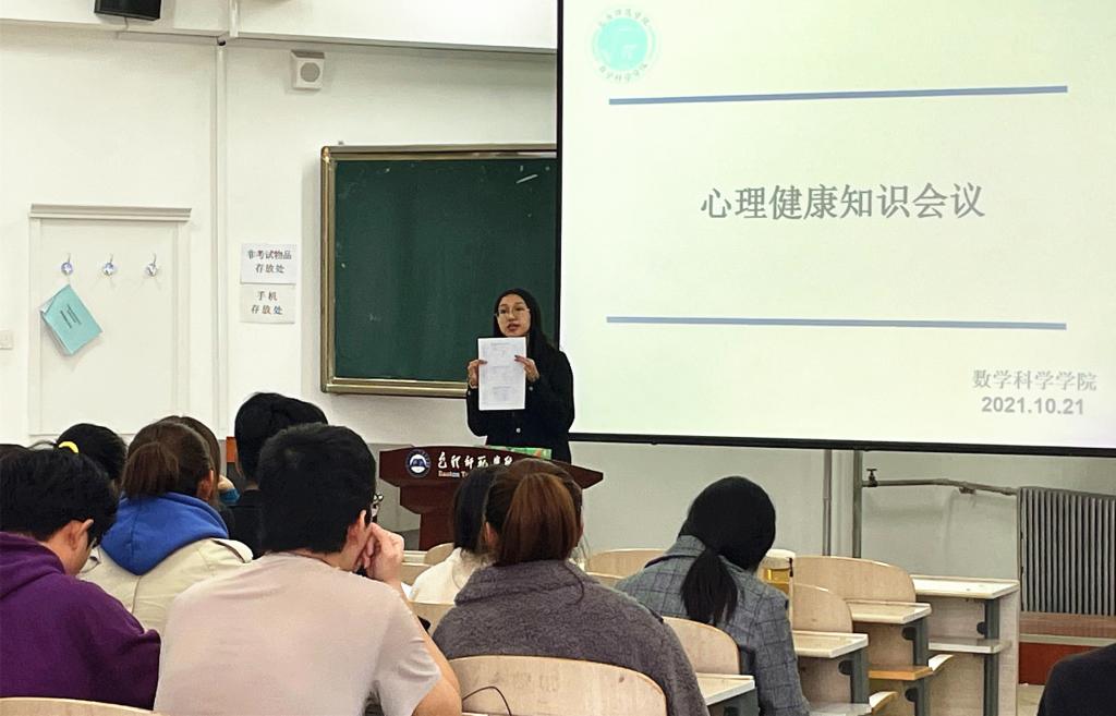 10月21日中午,数学科学学院在博学楼406召开舍风建设和心理健康教育工作专题会议,党总支副书记姜雪,辅导员刘晶、陈娟,各班班长、心理委员、心情联络员(宿舍长)出席了会议。