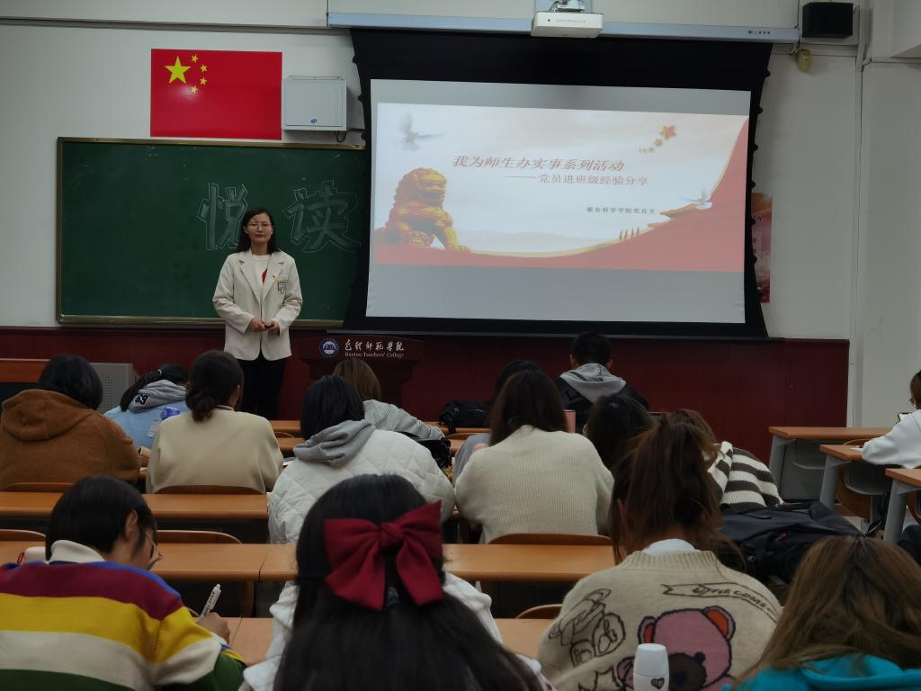 为进一步推进党史学习教育,教育科学学院学生党支部将“学党史”与“我为师生办实事”实践活动相结合,立足思想、学习、生活等方面,为新生“量身定做”入学教育系列活动,10月12日晚,学生一支部6名党员和二支部8名党员,分小组分别进入5个新生班晚自习进行经验交流,致力于解决新生最直接、最关心、最现实的问题。