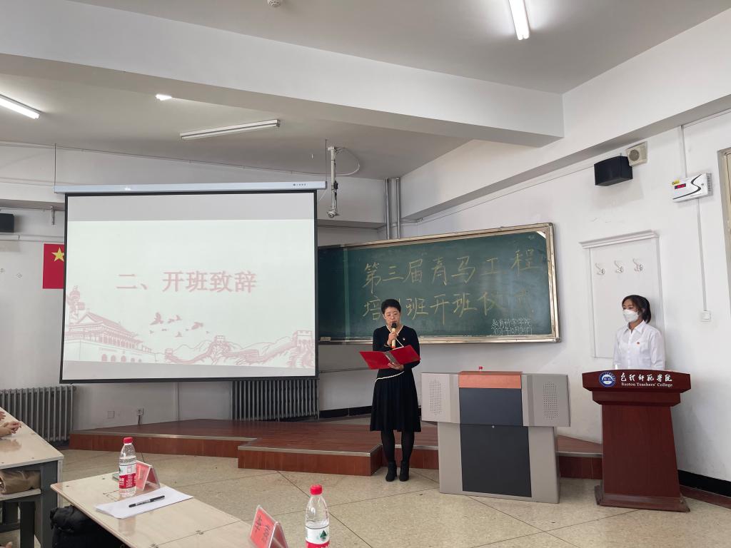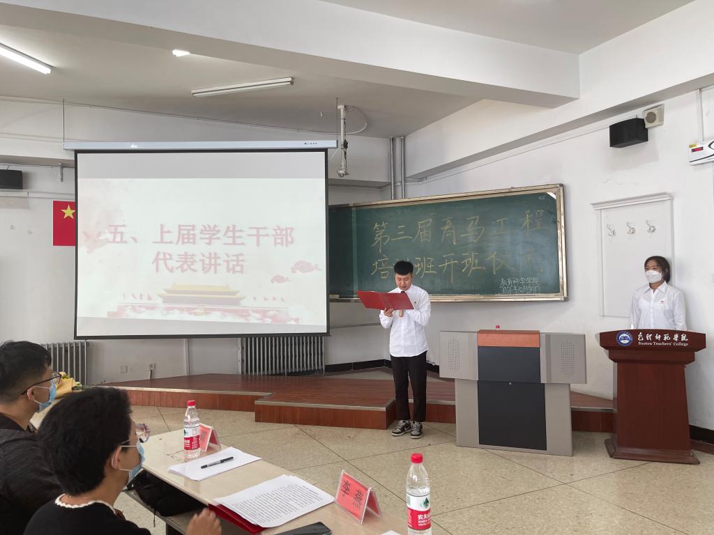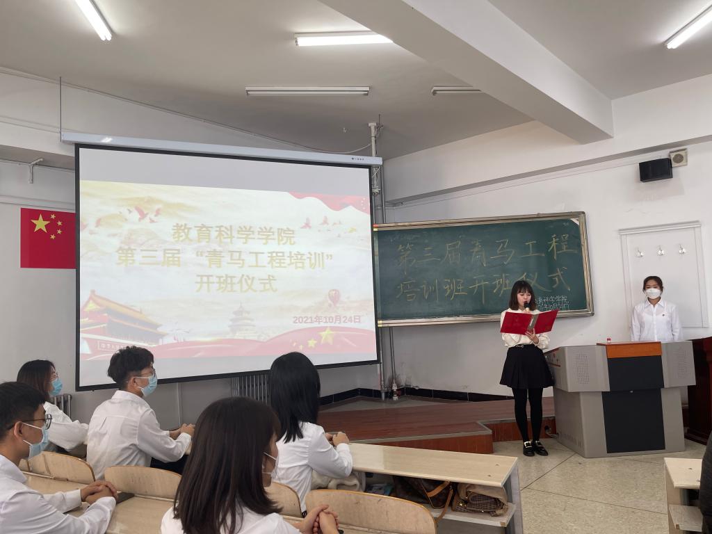 为深入推进党史学习教育,在青年学生中着力培养一批运用马克思主义中国化的最新理论成果武装的“政治坚定、德才兼备、素质全面、模范表率、堪当重任”的青年马克思主义者,教育科学学院积极响应团中央号召,认真落实“青马工程”人才培养战略任务,于2021年10月24日在博西104举办了第三届“青马工程”培训开班仪式。本次开班仪式由辅导员王璐然主持,教育科学学院党总支副书记李燕、辅导员刘佳琪、姜麒出席了开班仪式,全体学生干部参加。