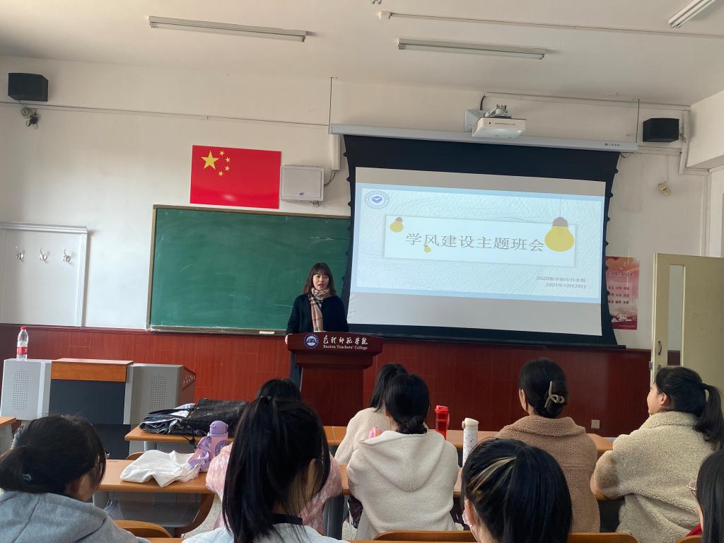 为了进一步落实学校和学院关于加强学风建设的具体要求,教育科学学院各班积极组织学生召开学风建设主题班会,20级学前教育专升本班和19级小学教育1班于2021年10月29日召开了关于加强学风建设主题班会,班会由两个班级班主任王璐然和李秀丽主持,两个班全体同学参加了班会。
