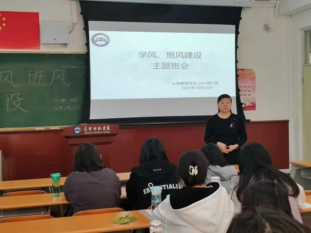 班会均有四项重要议程。首先,班主任宣读了《教育科学学院2021年加强学风建设实施方案》,从课堂纪律、教室卫生、文明礼仪、宿舍卫生进行逐条解读,强调了让同学们按时上课、不迟到、不早退,不在教室内吃东西,每日保持宿舍卫生等方面,教育引导学生养好良好学习和生活习惯。其次,班主任带领全体学生学习包头师范学院大学生行为规范“十要十不要”,让学生铭记在心,以“十要十不要”规范日常行为。随后,班主任均强调在学业方面应注意的问题,临近期中,要合理规划学习时间,不要期末突击复习。最后,班主任着重强调了近期疫情防控的问题,非必要不离校,在校期间佩戴好口罩,不聚集、不隐瞒行程轨迹,不造谣、不传谣,不在微博、微信、朋友圈转载或发表不当言论,同时也要求班干部和宿舍长积极发挥引领带头作用,重点关注学生心理动态,及时掌握学生思想动态。