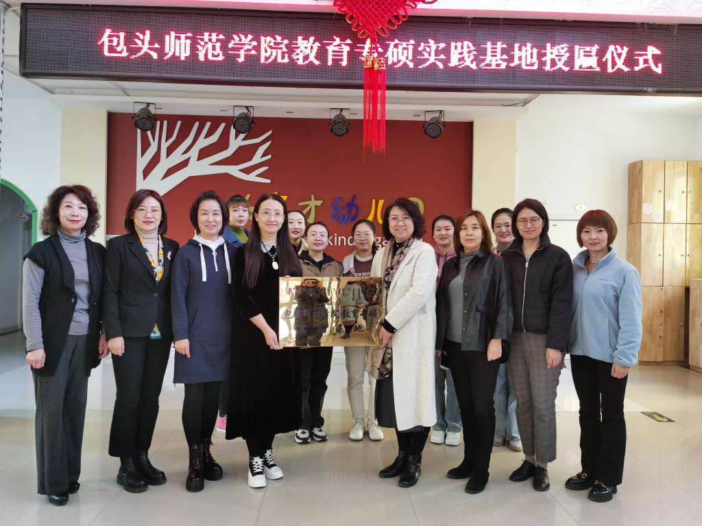 2021年10月19日,教育科学学院与育才幼儿园教育硕士研究生实践基地举行授牌仪式在育才幼儿园举行。包头市育才幼儿园吴慧文校长、李亚文副校长以及教师代表,包头师范学院教育科学学院院长李芳、研究生教学秘书韩萨日娜、学前教育专业实践系主任高伟出席授牌仪式。