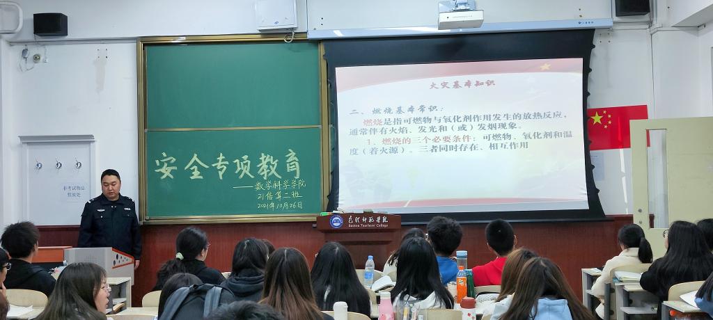 10月26日至27日,数学科学学院邀请到保卫处高峰老师利用晚自习时间为2021级4个新生班分别开展了入学教育之安全教育专题讲座。