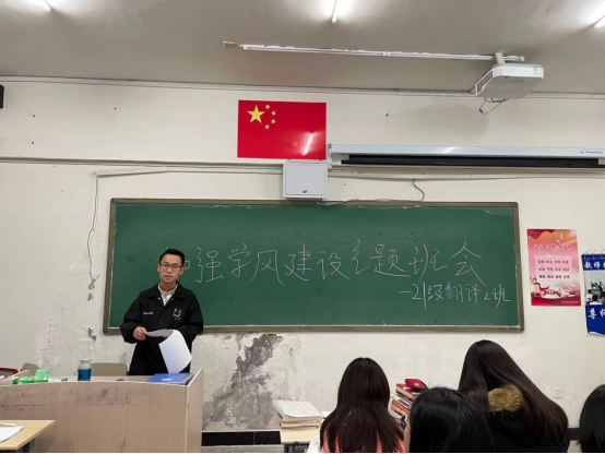 为贯彻落实学校“学风建设工作推进会”的部署要求,加强学风建设,进一步增强师范类专业认证准备工作的时效性和针对性,认真落实好“人人关心认证、人人了解认证、人人参与认证、人人为师范类专业认证作贡献”的总要求,提振学生精神面貌,创造良好的育人氛围。10月26日,外国语学院对“学风建设工作”进行了部署安排,制定了《外国语学院关于进一步加强学风建设工作的实施方案》,并组织各班开展“加强学风建设”的主题班会,切实做好大学生行为规范的引导教育。