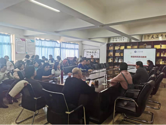 首先由董海燕副书记领学了《新时代高校教师职业行为十项准则》,重申了师德师风的定义,结合具体案例解读了坚定政治方向、自觉爱国守法、传播优秀文化、潜心教书育人、关心爱护学生、坚持言行雅正、遵守学术规范、秉持公平诚信、坚守廉洁自律、积极奉献社会这十项行为准则。