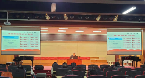 赵玉强介绍了学院师德师风建设工作方案和推进情况,领学了《新时代高校教师职业行为十项准则》,传达了学校师德师风专题警示教育大会的主要内容和精神,重点从坚定政治方向、自觉爱国守法、传播优秀文化、潜心教书育人、关心爱护学生、坚持言行雅正、遵守学术规范、秉持公平诚信、坚守廉洁自律、积极奉献社会等十个方面,根据学校提供的案例,进行了事件介绍、分析和警示,同时用身边人、身边事做了进一步的阐述,引起了全体教职工的共鸣。