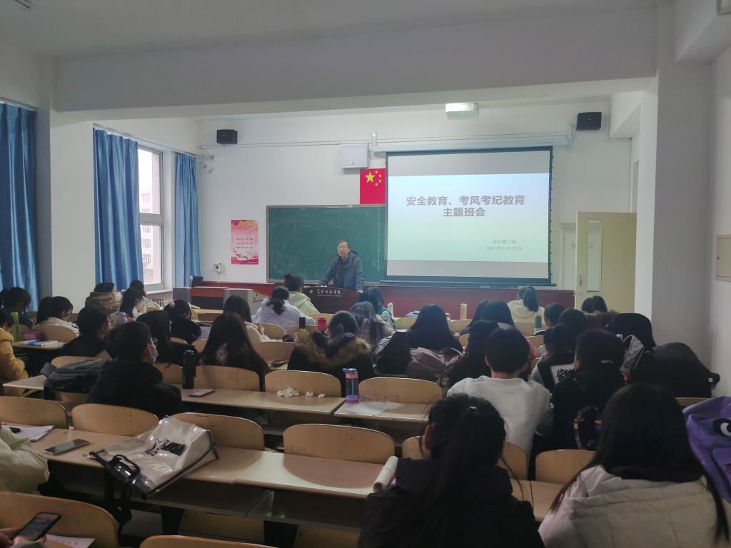 “安全教育和考风考纪教育”主题班会的召开,进一步增强了学生的安全防范意识,为校园的安全稳定建设起到积极作用,同时推动学院学风建设,营造“善学、乐学”良好氛围,为学期末考试的顺利进行保驾护航。(教育科学学院)