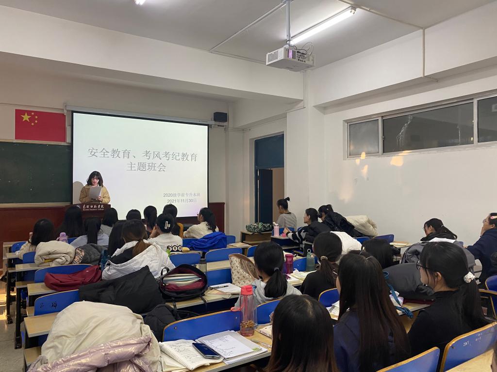 临近期末、英语四六级和考研等各种考试的到来,为严肃考风考纪,加强诚信教育,营造“公平、公正、诚实、守信”的考试氛围,同时针对宿舍安全、财产安全等问题,教育科学学院大一到大四共24个班在11月25日-12月2日期间,召开了关于“加强安全教育和考风考纪教育”主题班会,班会由各班班主任主持。