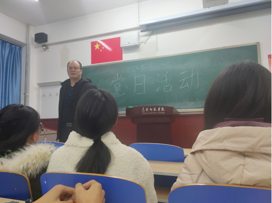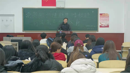为进一步加强考风考纪建设,营造公平、公正的考试环境,教育引导新生诚信应考,杜绝考试违纪、作弊现象,12月9日晚,文学院教工支部深入2021级新生班级开展“党员教师进新生班级进行考风考纪教育”主题党日活动。文学院教工支部全体党员、2021级全体新生参加党日活动。