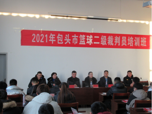 12月11日上午,包头市篮球协会举办的篮球二级裁判员培训班在体育学院举行开班仪式。包头市篮球协会主席艾军,体育学院院长车志宏、党总支副书记尚岩,内蒙古篮球协会裁委会主任斯琴巴特尔,包头市篮球协会裁委会主任王晨出席开班仪式。
