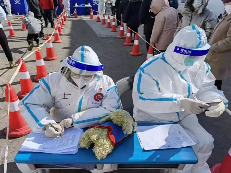 2019级汉国的孙晓楠、2021级播主冯苗同学按照防疫要求,为群众耐心解答、细心引导维持现场秩序。孙晓楠同学按时告知村里的村民做核酸检测,并帮助不会使用智能机的老年人找出自己的健康码与行程码,帮助全村居民都顺利完成核酸检测。冯苗同学以单元、楼栋为单位,通知住户分批次排队待检,确保核酸的检测有序进行。