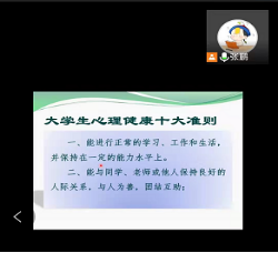 张鹏老师主要围绕疫情线上教学对心理健康的影响以及疫情防控期间如何进行心理调适这两方面内容展开讲座。张老师理论结合实际,以丰富的案例、幽默诙谐的方式帮助同学们形成对心理学的基础认知,并介绍了如何将心理学运用到学习和生活当中。其次,他分享了判断自身心理是否存在问题的方法,并提出了调适的有效建议,鼓励广大同学接纳疫情线上教学的现实,努力做情绪的调节者,居家期间应合理与家长进行沟通,适当解决产生的问题。