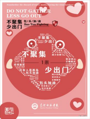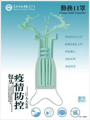 美术学院党团组织积极引导广大师生发挥专业优势,讲好防疫抗疫故事,以专业作品形式宣传普及抗疫知识。王丽洋老师在视觉传达专业2020级广告策划课程中,指导学生以包头疫情防控为切入点,深入挖掘抗击疫情宣传资源,融入科普知识,高质量完成线上教学,积极参加宣传志愿服务。同学们经过两周创作,从主题挖掘到后期制作,把专业知识应用到疫情防控宣传教育中,既提升了学习兴趣,也展现了美院学子的精神面貌和责任担当。