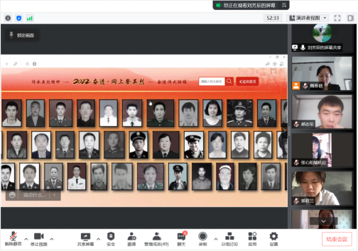 “英魂永驻凝忠雨,浩气长存酿劲雷。先驱血铸祥和路,史册留芳万古垂。”为深切缅怀革命先烈,重温历史时刻,包头师范学院研究生院党支部开展线上“缅怀革命烈士,牢记初心使命”清明节主题党日活动,研究生院党支部全体党员和入党积极分子参加了本次活动,包头师范学院党委委员、副校长双山同志以普通党员身份参与了活动。本次活动由刘芳辰主持。