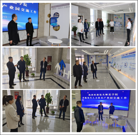 交流开始前由包头人力资本产业园董事长范殿林带领我院领导和老师参观并了解了产业园强劲的综合实力与美好的发展前景。