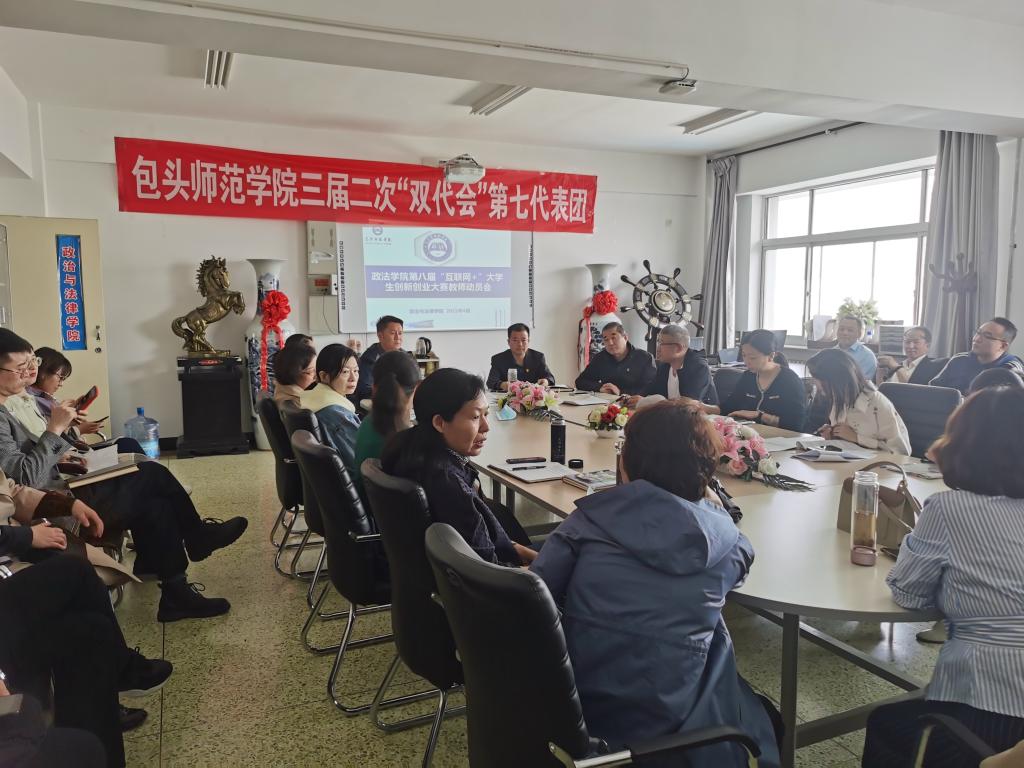 为了贯彻落实我校第八届“互联网+”大学生创新创业大赛启动仪式暨项目培训会会议精神,更好地进行专创融合,迎接校赛、省赛,4月21日上午,政法学院在729会议室召开了第八届“互联网+”大学生创新创业大赛教师动员会。学院党总支书记高德胜、副书记郭宏升、副院长李霞和全体教师参加了会议。