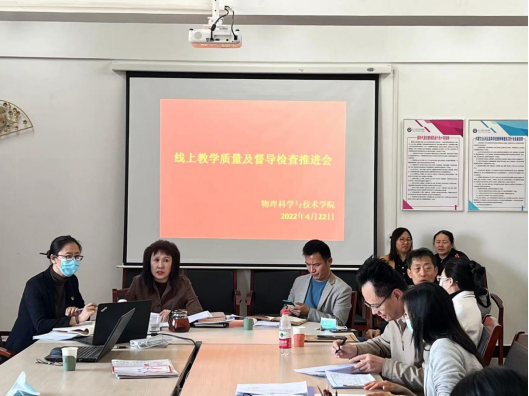 为了保证本学期教学工作的顺利开展和教学秩序的正常运行,做好疫情防控期间线上教学质量监控与保障工作,掌握线上教学动态,保证线上教学质量与学生学习效果,加强教学过程管理和教学质量监控,促进教风、学风建设,物理科学与技术学院于2022年4月22日下午15:00召开了“线上教学质量及督导检查推进会”。会议由王芳副院长主讲,对线上教学检查工作做了进一步的安排。