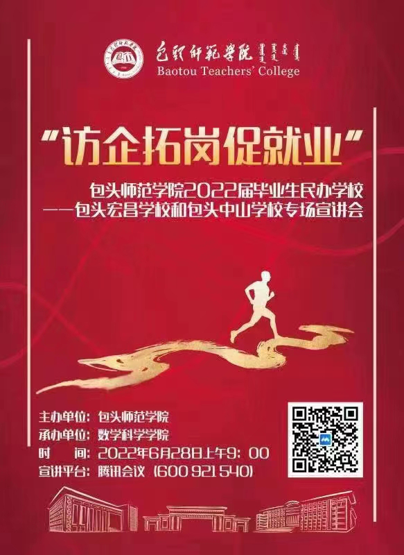 6月28日上午,数学科学学院特邀请包头宏昌学校和包头中山学校为毕业生开展线上线下相结合的宣讲。宣讲会上,包头中山学校副校长李奉春和包头宏昌学校校长高昕分别就各自学校的发展状况、教师薪资待遇、发展成长空间,以及2022年招聘计划等做了详细介绍。两所学校各具优势,校区建设、教学环境、教学设施日渐完善,薪资福利可观,对同学们的吸引力很强。