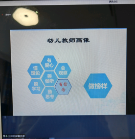 王萍教授从幼儿教师是否能被人工智能取代、如何不被取代等问题入手,系统分析了《幼儿园教育指导纲要》和《3-6岁儿童学习与发展指南》。王院长重点从7个方面解析了幼儿教师的专业能力:环境的创设与利用、一日生活的组织与保育、游戏活动的支持与引导、教育活动的计划与实施、激励与评价、沟通与合作、反思与发展。最后,王萍教授用简洁的词汇为幼儿教师画了像:有爱心、懂理论、愿学习、勤思考、善倾听、会观察、有信念、做榜样。