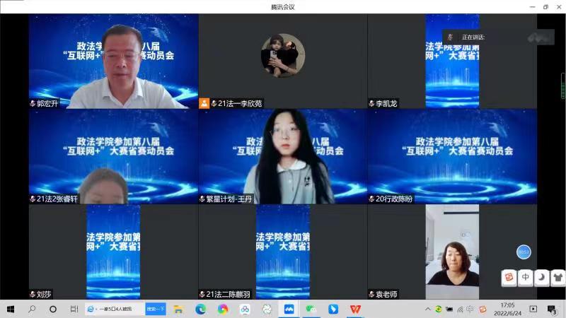 6月24日下午,政法学院召开了第八届“互联网+”大学生创新创业大赛省赛动员会。学院党总支副书记郭宏升,入围省赛项目负责人、指导老师和团队成员参加了会议。会议由学工办主任袁爱荣主持。