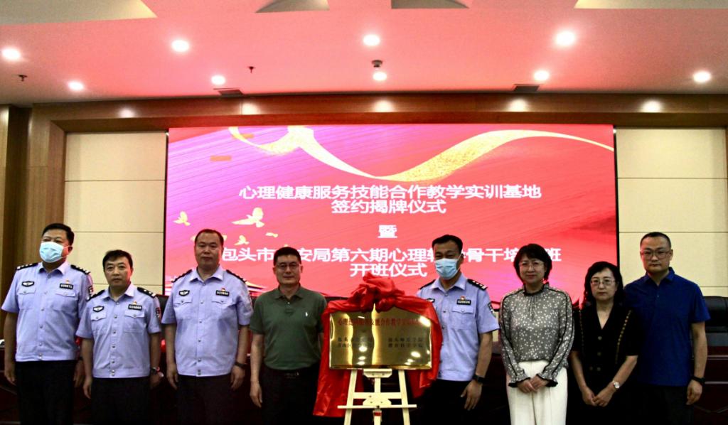 会上,由包头市公安局政治部副主任杜永强与赵建军处长为“包头师范学院教育科学学院与包头市公安局、青山区公安分局心理健康服务技能合作教学实训基地”剪彩、揭牌;武昊副区长与李芳院长签订《包头师范学院教育科学学院与包头市公安局青山区公安分局关于建立心理健康服务技能合作教学实训基地的协议》。