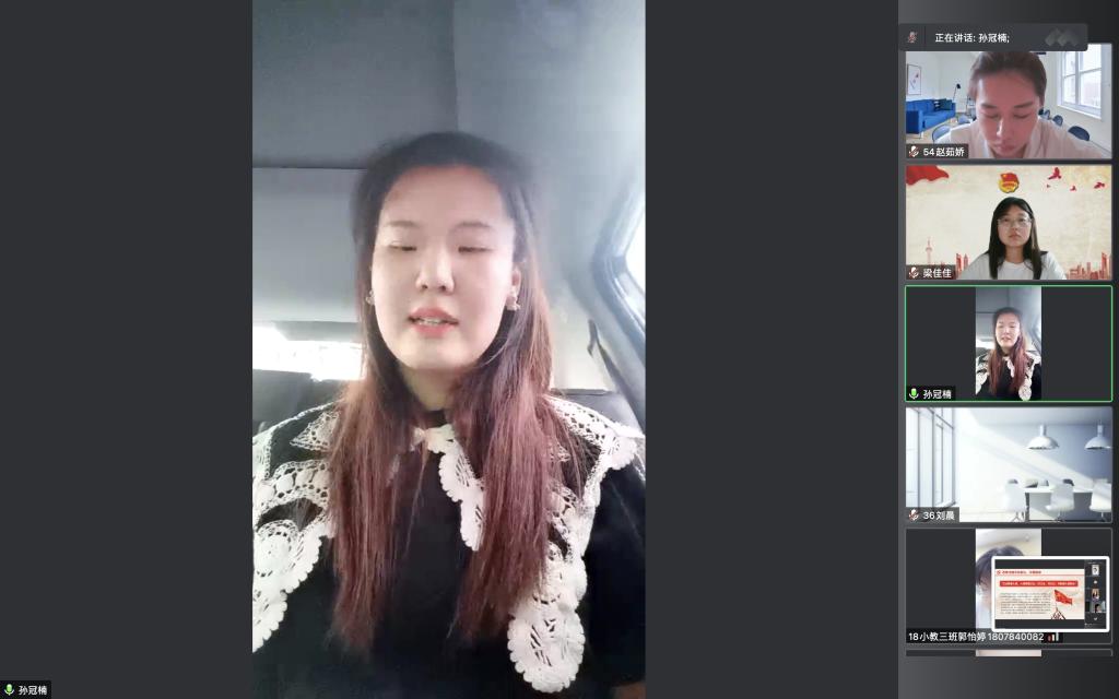 为不断提高学生党员思想水平和政治觉悟,更好地践行党的宗旨,激励广大学生党员不忘初心赓续奋斗,创造更辉煌的业绩,6月30日晚7点,教育科学学院学生第一党支部在腾讯会议上举办了“庆七一·支部书记讲党课”活动,党支部书记王璐然以“请党放心,强国有我”为主题,为51名党员上了一堂生动的党课。